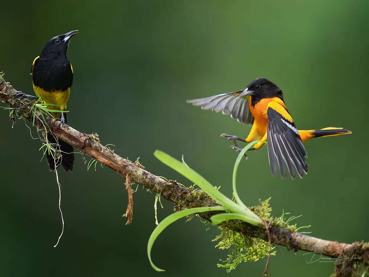 Black-cowled oriole (left) and Baltimore oriole