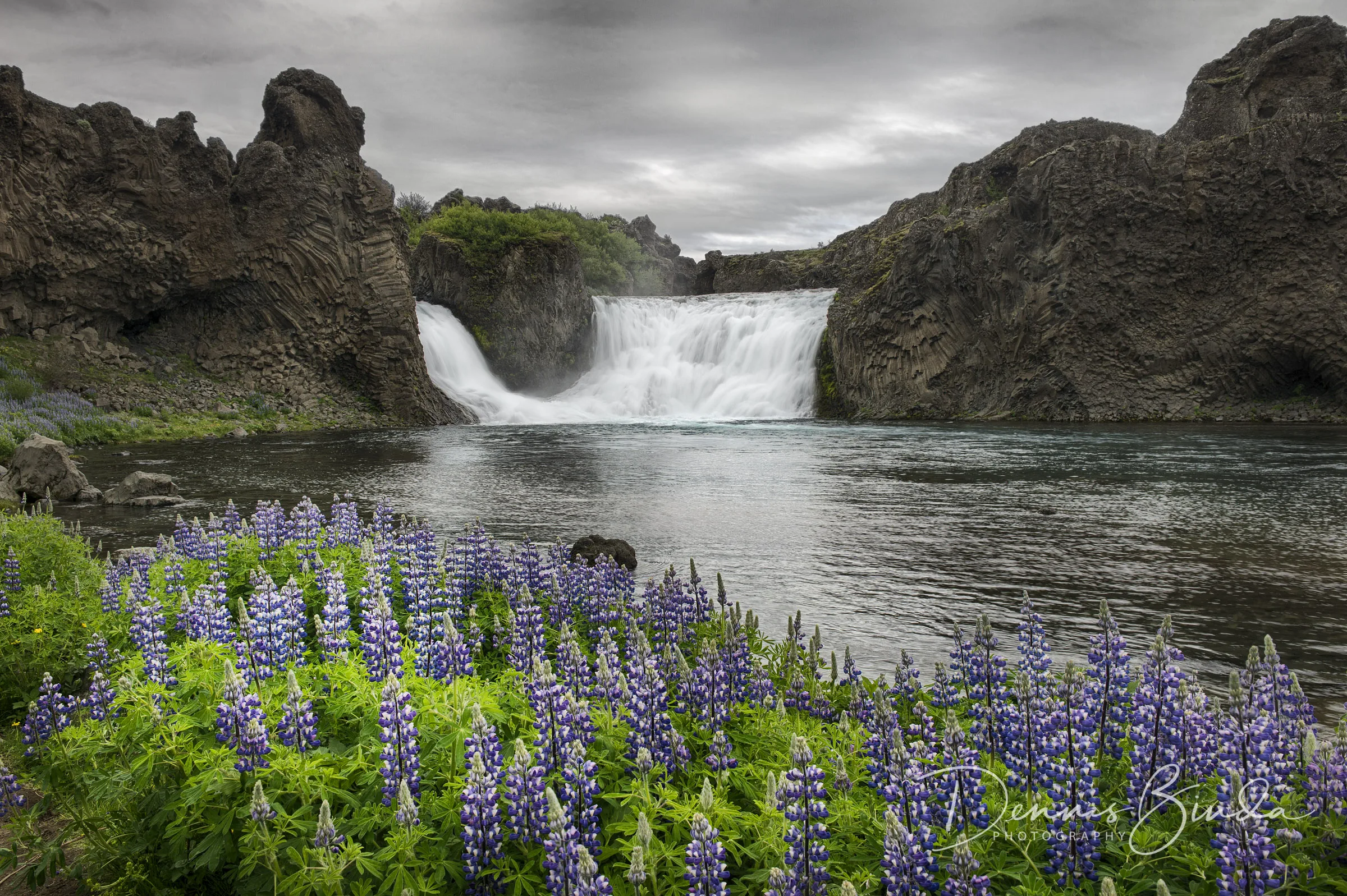 Hjallparfoss Waterfall and Lupine