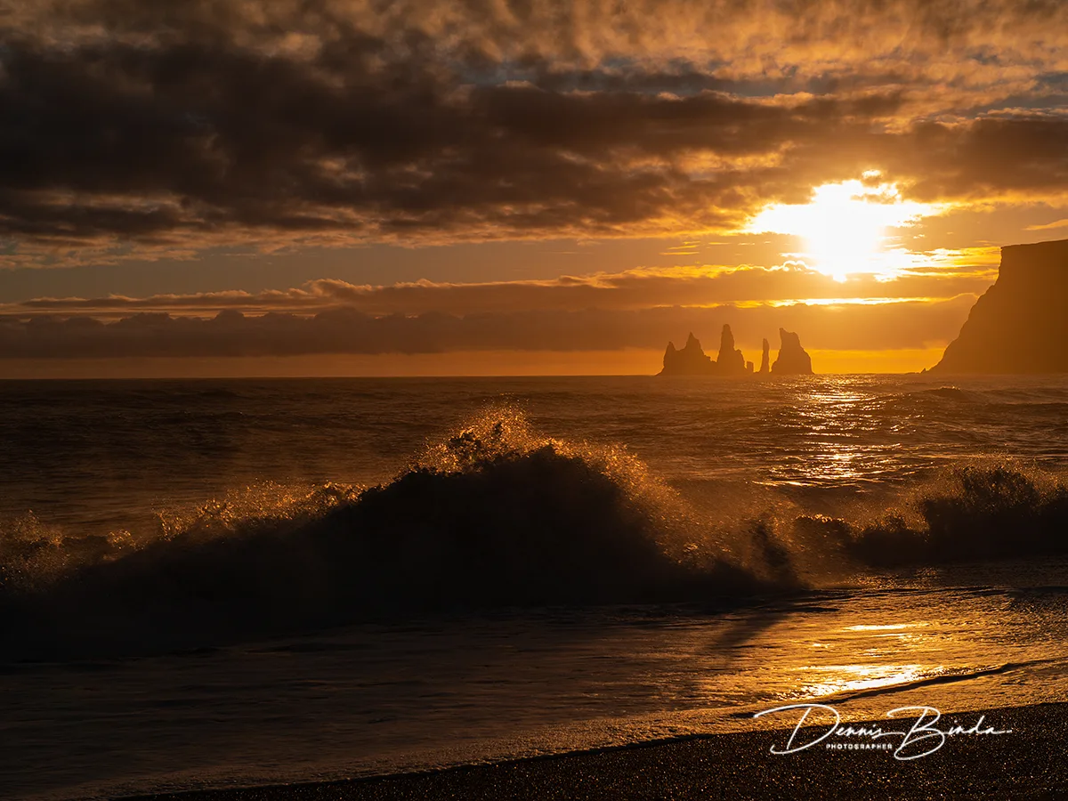 Sunset at the beach of Vik in Iceland